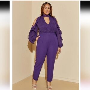 NWT ASHLEY STEWART 18/20 Cutout Ruffled Jumpsuit