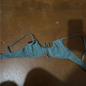 Stylish waffled bikini. Features a tie-front, underwire top. High-waisted bottom. Perfect for beach days. Size 10 bottom and 34C top.