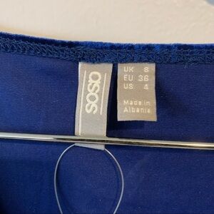 NWT ASOS Blue Velvet Balloon Long Sleeve Bodycon V-Neck Mini Dress Size 4