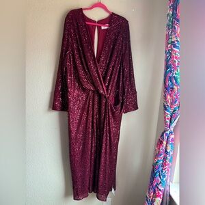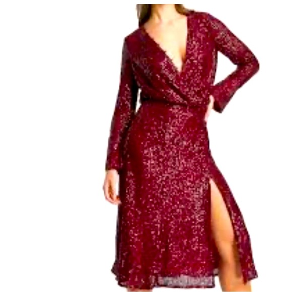 NWT ASOS Burgundy Red Sequin 3/4 Sleeve Wrap Midi Maxi Formal Cocktail Dress 22
