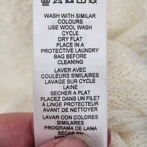 Place in a mesh bag before washing/ machine wash on wool cycle with wool wash detergent/ dry flat