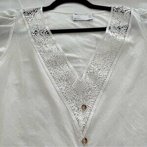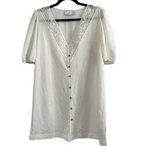 NWT ASOS DESIGN Crochet Trim V-neck Mini Dress with Horn Buttons in Cream Size 6