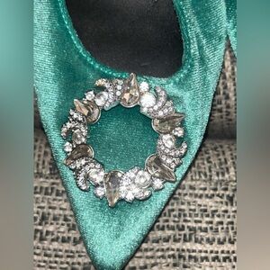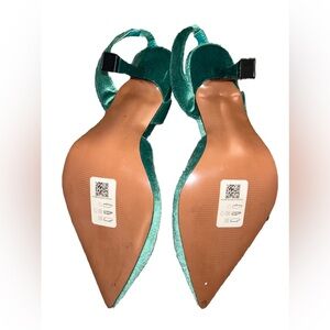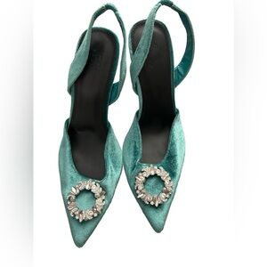 NWT ASOS DESIGN Velvet Green Poppy embellished slingback high heels size 8