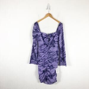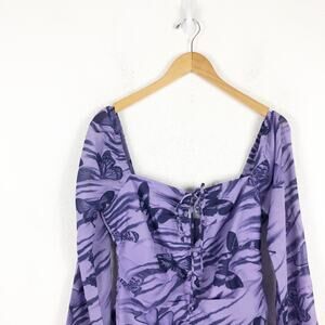 NWT ASOS DESIGN Keyhole Purple Butterfly Print Mini Dress Size 10 Buttons Y2K