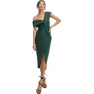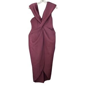 NWT ASOS Design Off Shoulder Twist Front Midi Dress With Front Slit In Burgundy