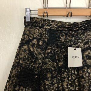 NWT ASOS Leopard Print Black and Gold Shiny Skirt Women’s Size 2