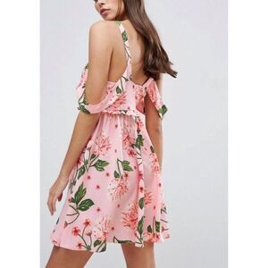 NWT ASOS MATERNITY Pink Floral Cold Shoulder Smock Fit & Flare Mini Dress