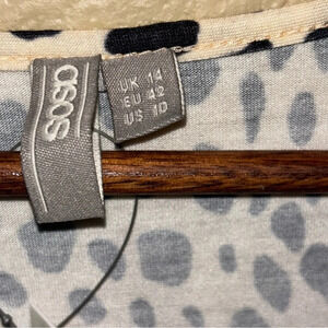 NWT ASOS Maternity Animal Print Faux Wrap Dress, size 10, 3/4 Sleeves, V-Neck, 97%Polyester, 3%Elastane, Machine Wash. In Great Condition, Approximate Measurements in Pictures. Great for Layering for Fall with Boots and Blazer or Cardigan.