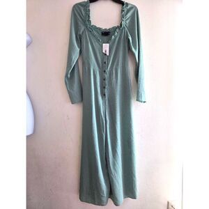 NWT ASOS Mint Green Button Front Ruffle Square Neck Straight Leg Jumpsuit size 4