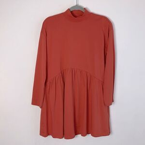 NWT ASOS Mock Neck Orange Flowy Babydoll Oversized Long Sleeve Cotton Dress Sz 2