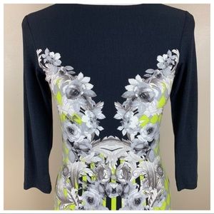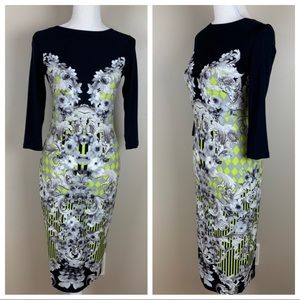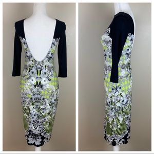 NWT. ASOS Multicolor Midi Dress with round neckline, 3/4 sleeves, back décolleté. Size 4. E1634.