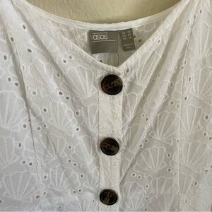 NWT ASOS Seashell Embroidered Eyelet Mini Dress Cotton White Size 10