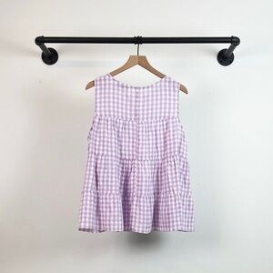 NWT ASOS Tiered Sleeveless Gingham Blouse in Purple & White