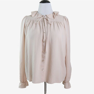 NWT ASOS US 8 Ruffle Tie Neck Blouse Long Sleeve Cream