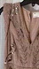 This is a women's ASOS DESIGN mini dress in a blush or light brown color, size S, featuring extensive silver and gold-toned beadwork and sequins in a leaf and linear pattern. The dress has a V-neckline, a fitted waist, and a draped open back with a zipper closure. It is sleeveless with a cap sleeve effect created by the draping. The hemline is adorned with small beads. The fabric appears to be a lightweight, possibly chiffon or georgette, material. The dress is new with tags.