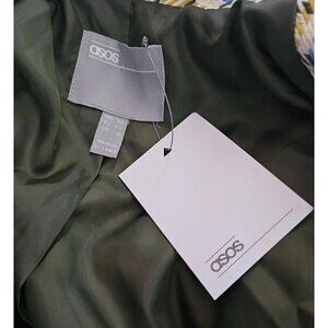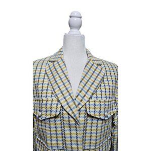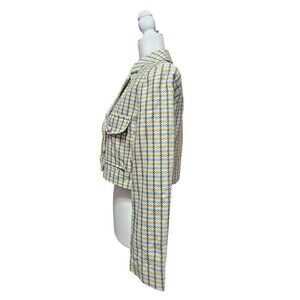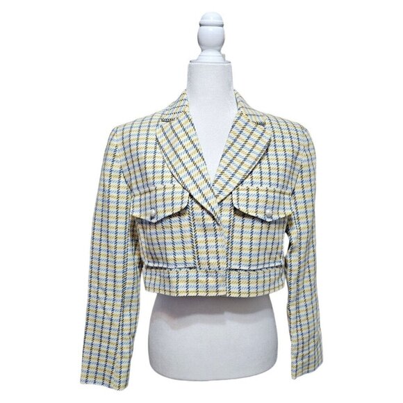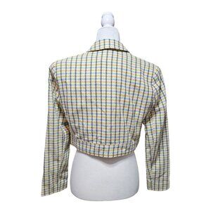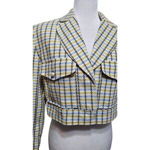 NWT ASOS yellow & blue short plaid cropped blazer with pearl accents size 8