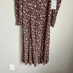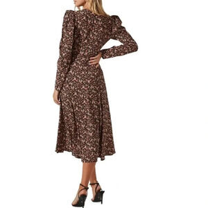 NWT ASTR Covered Button Midi Dress In Black Clay Floral