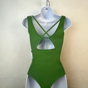 NWT ASTR the label Elmira Cutout Cross Strap Green Bodysuit Ribbed