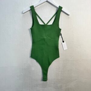 NWT ASTR Elmira Bodysuit Green Ribbed with Open Criss Cross Back Medium