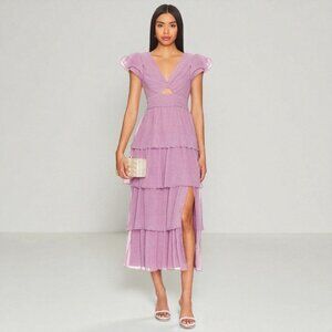 NWT ASTR Emporia Purple Pleated Tiered Midi Dress