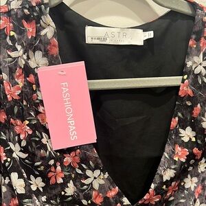 Elevate your style with this elegant floral V-neck top. Featuring a blend of black and pink hues, it's perfect for any occasion.