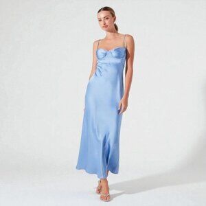 NWT ASTR Florianne Satin Maxi Dress Blue