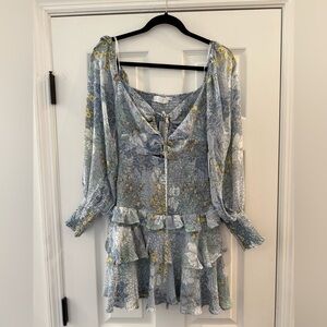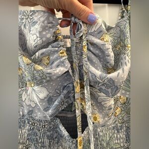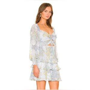 NWT ASTR MARIETTA BLUE FLORAL CINCHED BUST CUTOUT MINI DRESS Revolve Small