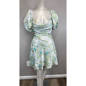 NWT ASTR THE LABEL Clarita Dress in Green & Blue Floral Size L $390