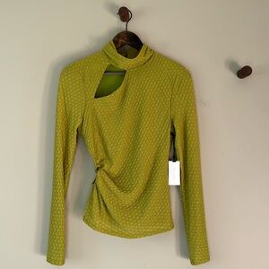 NWT ASTR THE LABEL TEXTURED CUTOUT LONG SLEEVE TOP SIZE MEDIUM PEAR GREEN