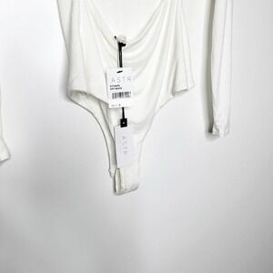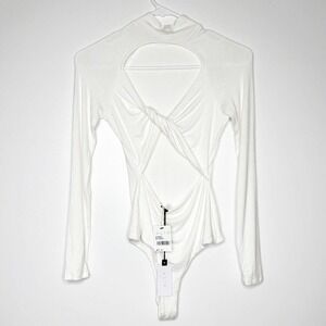 NWT ASTR The Label Prue Back Twist Bodysuit Long Sleeve Women's White Size S
