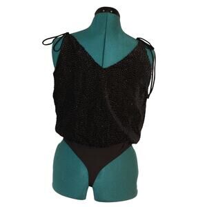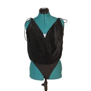 NWT ASTR The Label Thalia Black Beaded Wrap Bodysuit Women’s Small