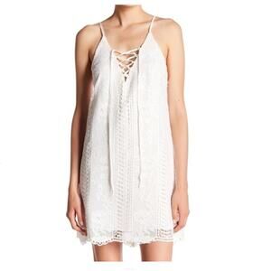 NWT ASTR The Label White Crochet Overlay Lace-Up Dress