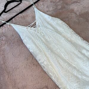 NWT ASTR The Label White Crochet Overlay Boho Lace-Up Dress Size: Large