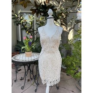 NWT ASTR The Label Womens Sheath Lurex Ivory Lace Dress Lined Spaghetti Straps S