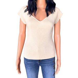 NWT ASTR The Label Cream Ribbed Sweetheart Top