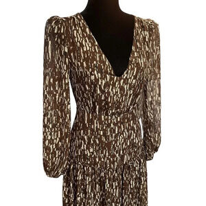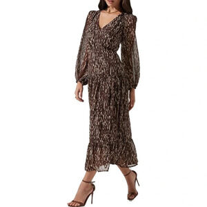 NWT ASTR the Label Chiffon Balloon Sleeve Tiered Maxi Dress in Brown Multi S