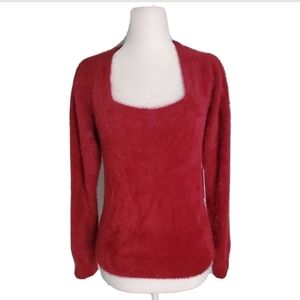 NWT ASTR the Label Fuzzy Crop Cranberry Red Sweater