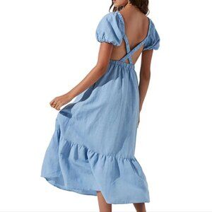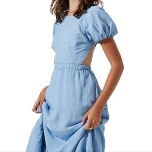 NWT ASTR the Label Light Blue Jelena Puff Sleeve Back Cutout Midi Dress - L