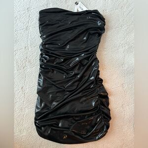 NWT ASTR the Label Paulette metallic tube mini dress in black S