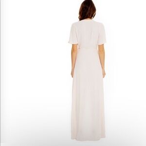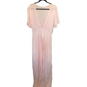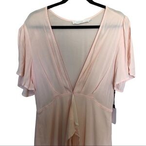 Bring your garden party dreams to life in the ASTR the Label Selma Blush wrap Dress! Gauzy fabric, in shades of pink, dance over slit, short sleeve, and trying sash belt. High low skirt ends at a maxi length.