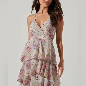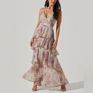 NWT ASTR The label Rosana Floral Tiered Ruffle Maxi Dress in BLUE NATURAL FLR