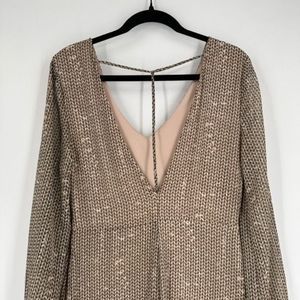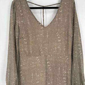 NWT ASTR Women's Chevron Print V Cut Out Back Maxi Dress Tan Large Boho Bohemian
