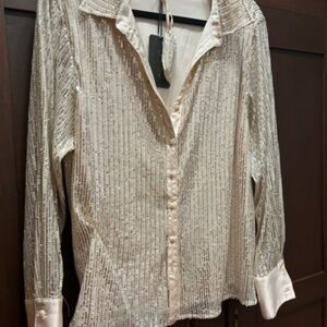 NWT ASbyDF ChampagneSequin Camellia Blouse with Satin Cuffs