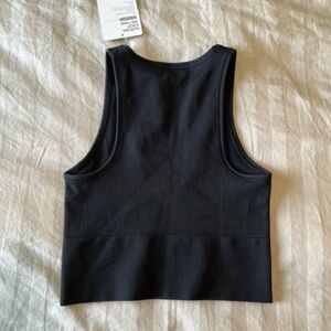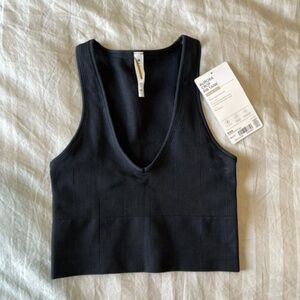 NWT ATHLETA AURORA SEAMLESS CROP RIB TANK BLACK V NECK LOW CUT WORKOUT YOGA TOP