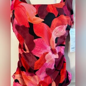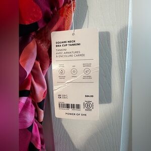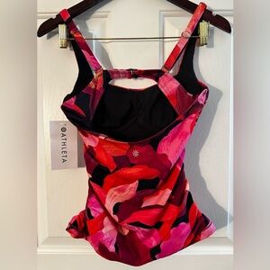 NWT ATHLETA Square Neck Tankini 32 B/C Liana Floral Mauve Swim Top #657740 $84