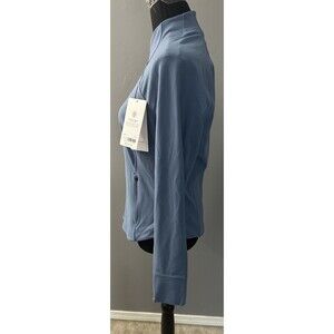 This jacket is part of the Athleta Be Free product line and has a fitted fit. It is machine washable and easy to care for. The jacket is stylish and versatile, making it suitable for both activewear and casual wear. The jacket has a solid pattern and a blue and blaze character. It is not handmade and is not a vintage item. Measures 15 shoulders, 17 chest and 23 in length.