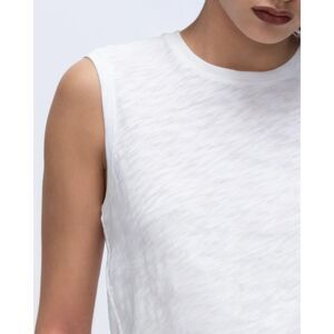 NWT ATM Women's 100% Cotton Slub Jersey Sleeveless Schoolboy Tee in White Size S