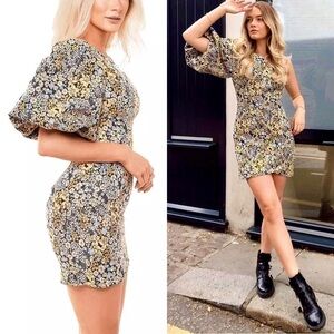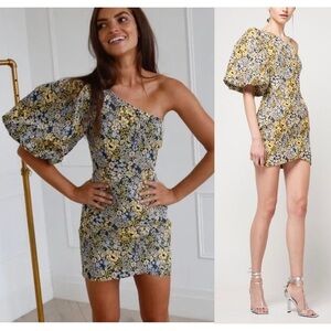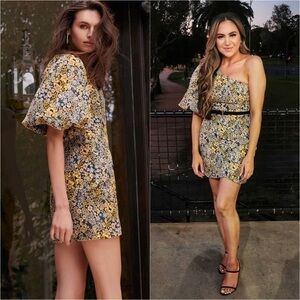 NWT ATOIR Floral Vintage Tapestry 1 Shoulder Puff Short Sleeve Wrap Hem Dress 2