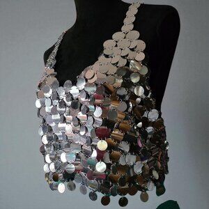 Evening, Dance, Disco. A Vest of Large and Smaller Sequins Connected with Links.