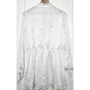 NWT AVEC FILLES Metallic Abstract Print Long Sleeve Tie Neck Ruffle Cuff Dress M